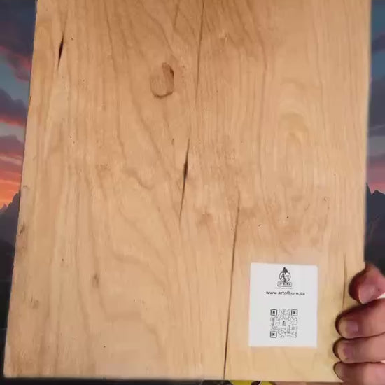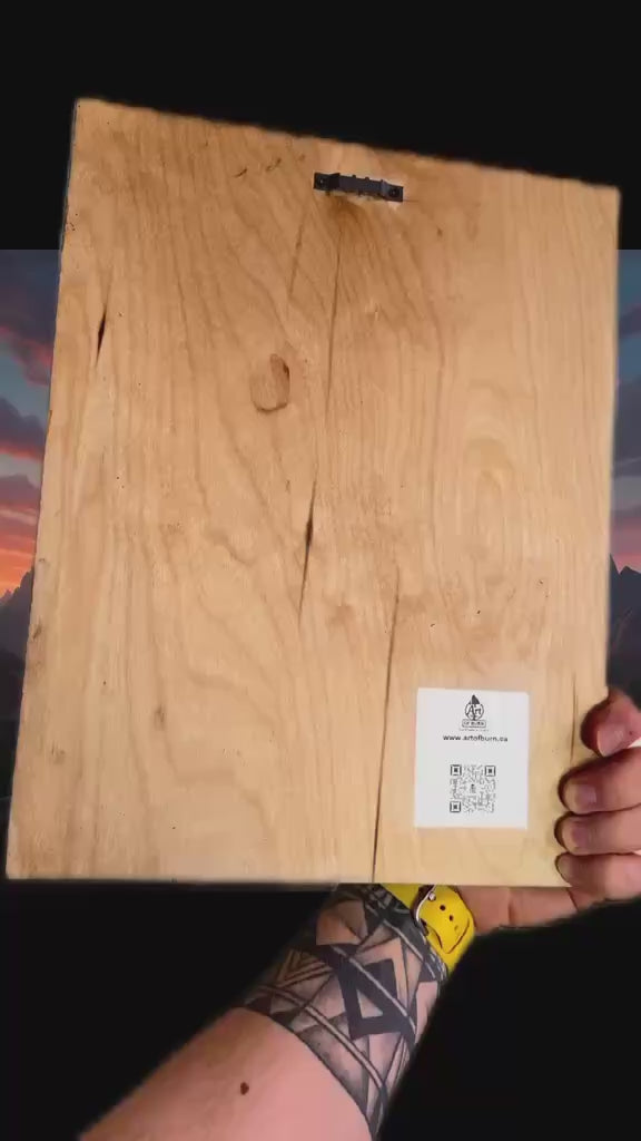 • Technique: burned image on wood